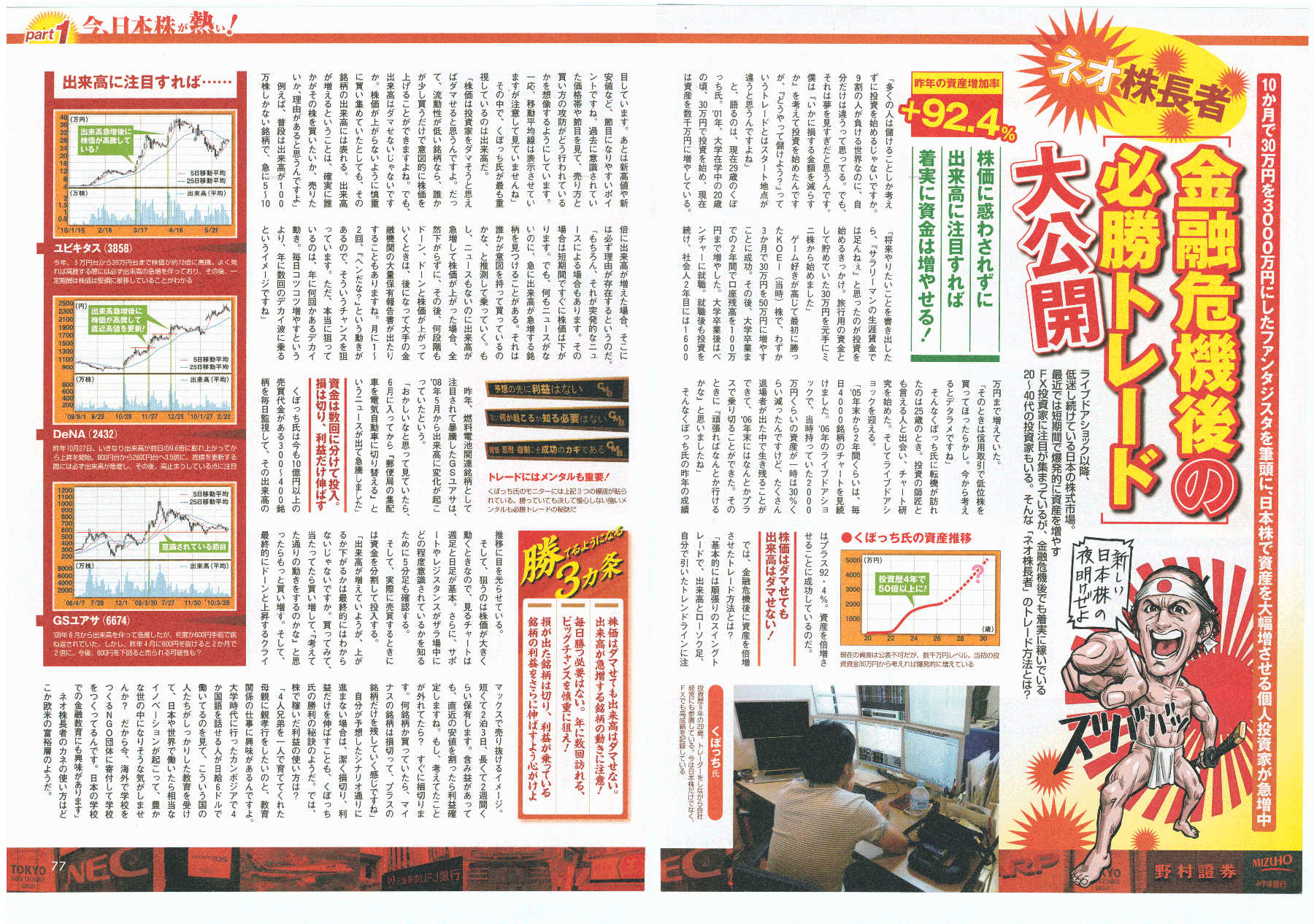 - スイングトレードをメインに手がけ、2012年には資産1億円を突破。