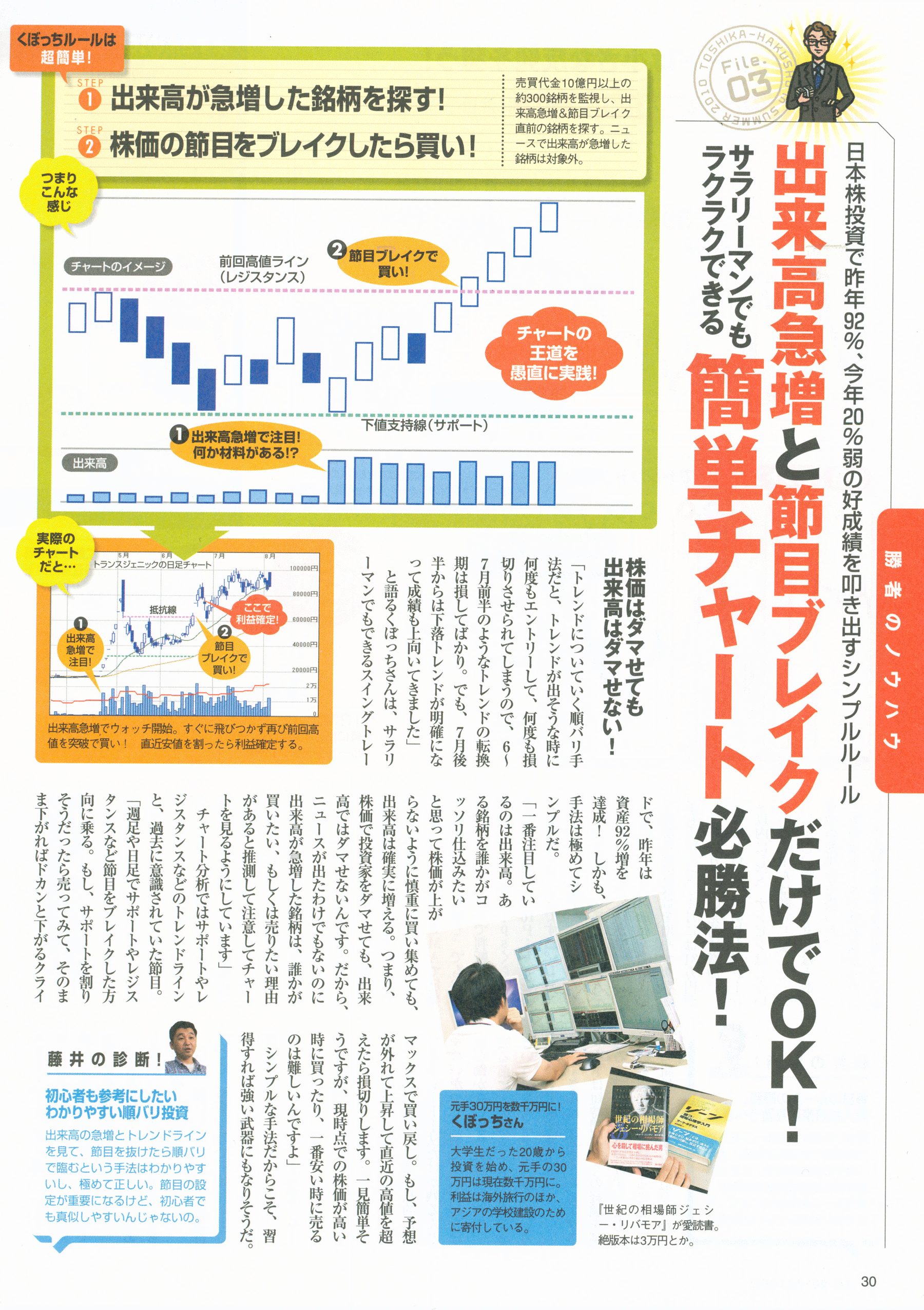 2010年、株式会社トレジャープロモートが運営するオンライン株式スクール「株の学校ドットコム」の講師に就任。さらに幅広い層に向けて、トレードの魅力を発信し続けている。
