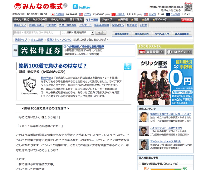 2011年2月24日 株の学校ドットコムのコラムが、Yahoo!ファイナンス、みんなの株式に掲載されました。