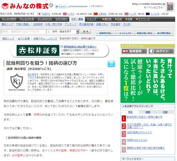 2011年6月23日 株の学校ドットコムのコラムが、Yahoo!ファイナンス、みんなの株式に掲載されました。