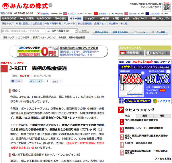2011年7月27日 株の学校ドットコムのコラムが、Yahoo!ファイナンス、みんなの株式に掲載されました。