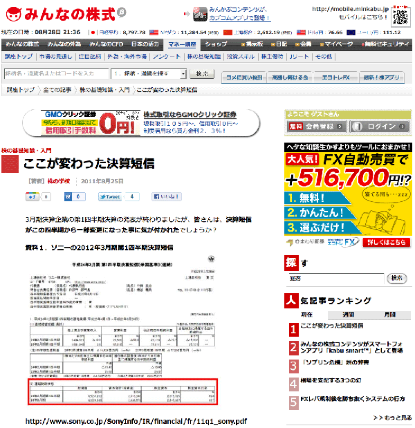 2011年8月28日 株の学校ドットコムのコラムが、Yahoo!ファイナンス、みんなの株式に掲載されました。