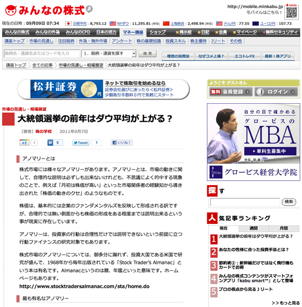 2011年9月09日 株の学校ドットコムのコラムが、Yahoo!ファイナンス、みんなの株式に掲載されました。