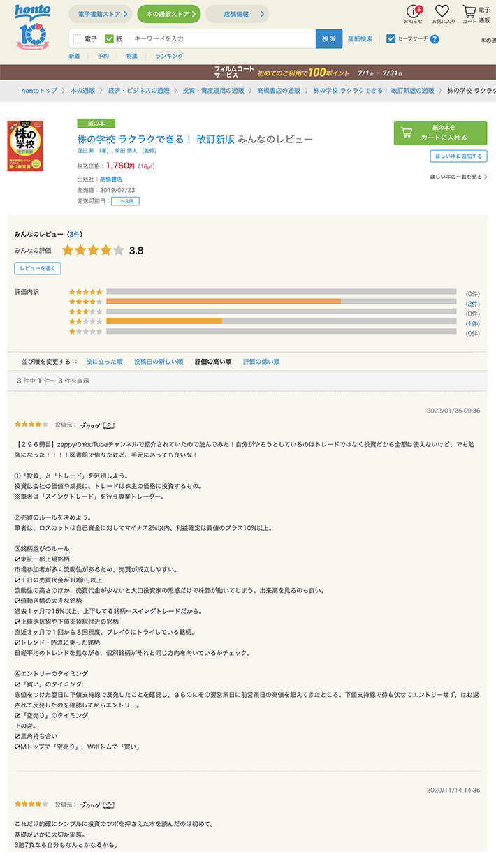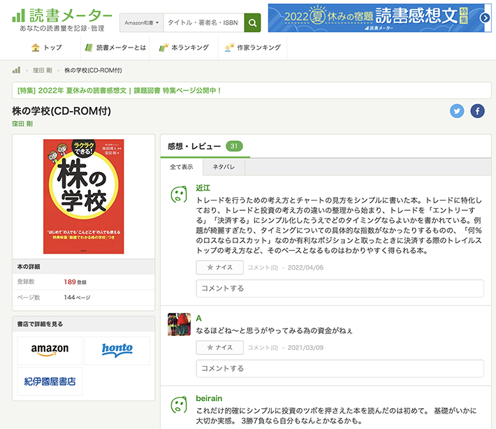 株の学校ドットコムの講座や、書籍『株の学校』のWEB上の評判・口コミはこちらよりご確認いただけます。Amazonや楽天ブックスなど信頼できる大手の書籍レビューページ、Facebookの投稿などをとりまとめています。